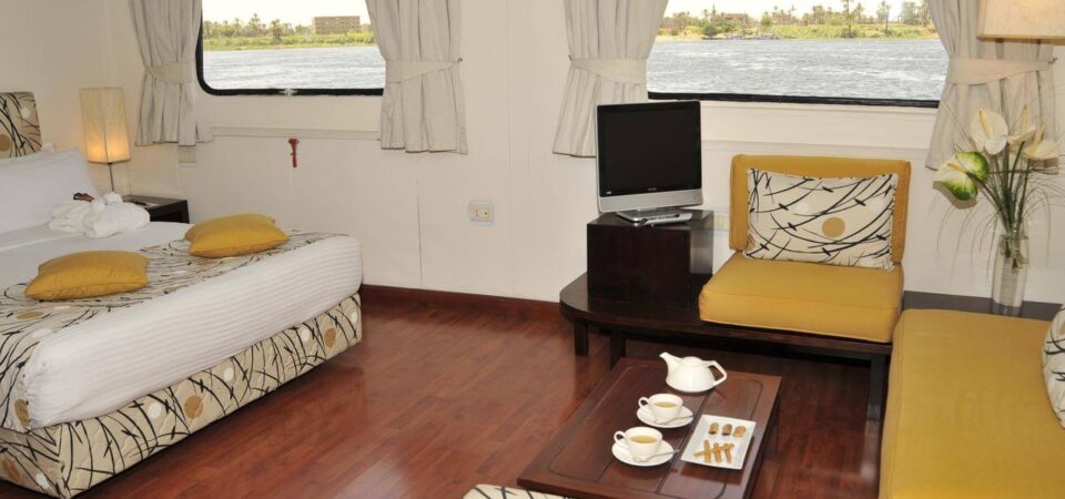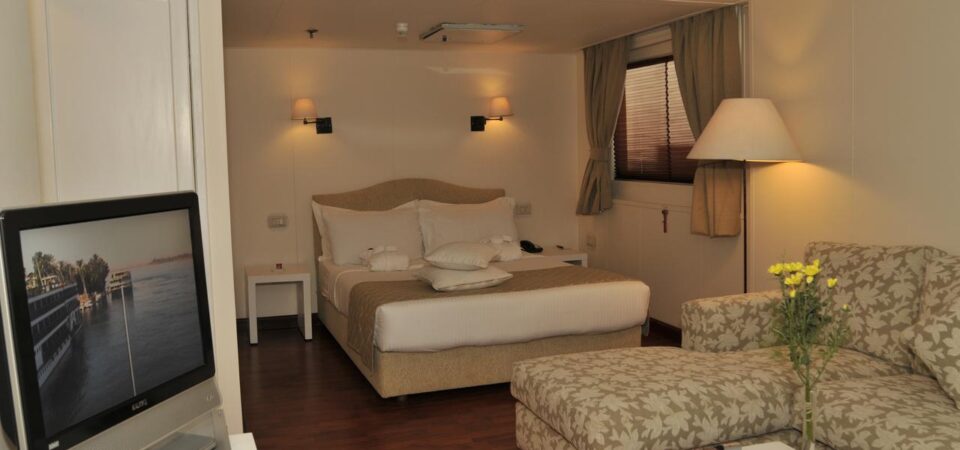 Travel in comfort and style across the river Nile in Jaz Regent Nile Cruise. Stay in tastefully crafted cabins with the finest interiors and features like televisions brought to you by Marine satellite and WiFi for entertainment.